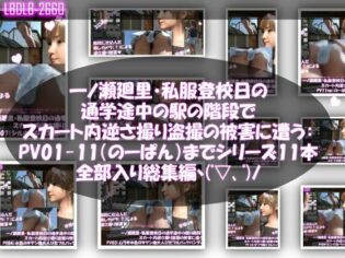 DMM d_747073【ダウンロード】一ノ瀬廻里・私服登校日の通学途中の駅の階段でスカート内逆さ撮り盗撮の被害に遭う:PV01〜ノーパンのPV11まで11本全部入り総集編!漫画大全